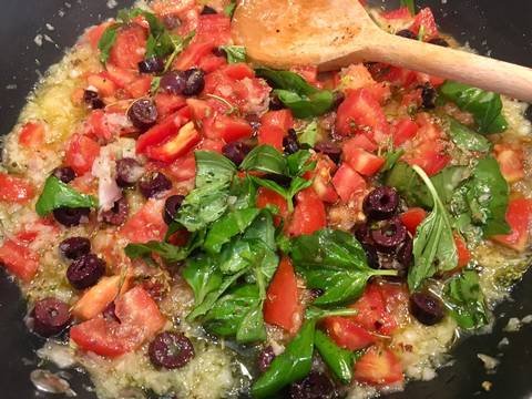 Την προσθέτουμε στη σάλτσα με την ντομάτα και αφήνουμε τα υλικά να βράσουν και να δέσουν οι γεύσεις για αλλά 10 λεπτά,προσθέτοντας αλάτι και φρέσκο πιπερι.