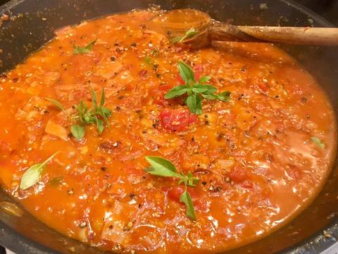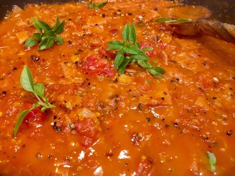 Προσθέτουμε κ πολυ λίγο νερό αν χρειαστεί και μαγειρεύουμε μέχρι η σάλτσα να γίνει παχύρρευστος πολτός. Δοκιμάζουμε για αλάτι πιπέρι.(Αν ξινίζουν οι ντοματες προσθέτουμε λίγη ζάχαρη?).Ωστοσο βράζουμε τα μακαρόνια σύμφωνα με τις οδηγιες της συσκευασίας! Τα προσθέτουμε μέσα στην σάλτσα και σερβίρουμε με φρεσκο πιπερι παρμεζάνα κ φρέσκα φύλλα βασιλικού! Καλή σας απόλαυση! ?