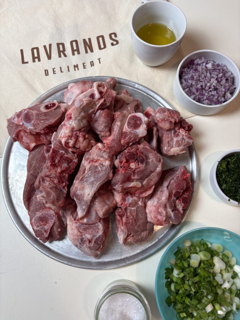1 ½ κιλό αρνάκι (πλάτη ή μπούτι), κομμένο σε μερίδες από Lavranos Delimeat