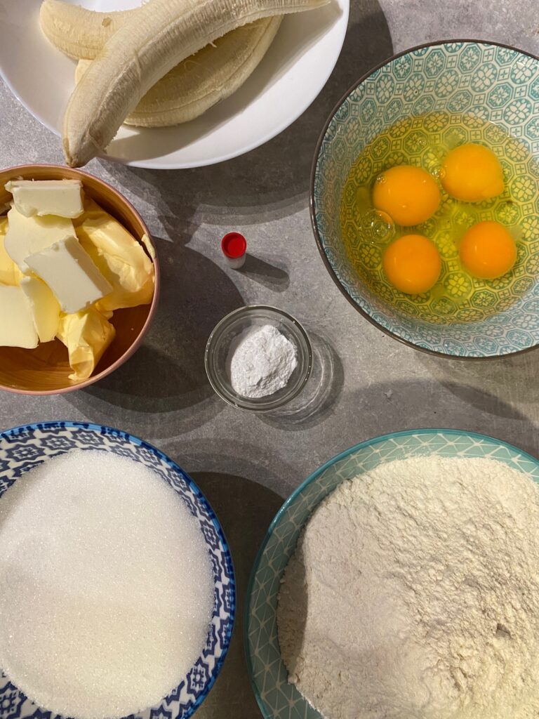 Χτυπάμε το βούτυρο με την ζάχαρη, προσθέτουμε ένα ένα τα αυγά μέχρι να γίνει ένα ομοιόμορφο μείγμα,ρίχνουμε και την βανίλια. Κοσκινίζουμε το αλεύρι με το μπέκιν τα προσθέτουμε μέσα στο μείγμα και ανακατεύουμε.Στη συνέχεια ανακατεύουμε στο μείγμα καιτις πολτοποιημένες μπανάνες .Τοποθετούμε μια λαδόκολλα σε ένα ταψάκι 26εκατ και ρίχνουμε το μείγμα μέσα. Ψήνουμε σε προθερμασμένο φούρνο στους 180 βαθμούς για 35-40 λεπτά. Ελέγχουμε με ένα μαχαίρι αν βγαίνει στεγνό είναι έτοιμο. Αφήνουμε να κρυώσει.