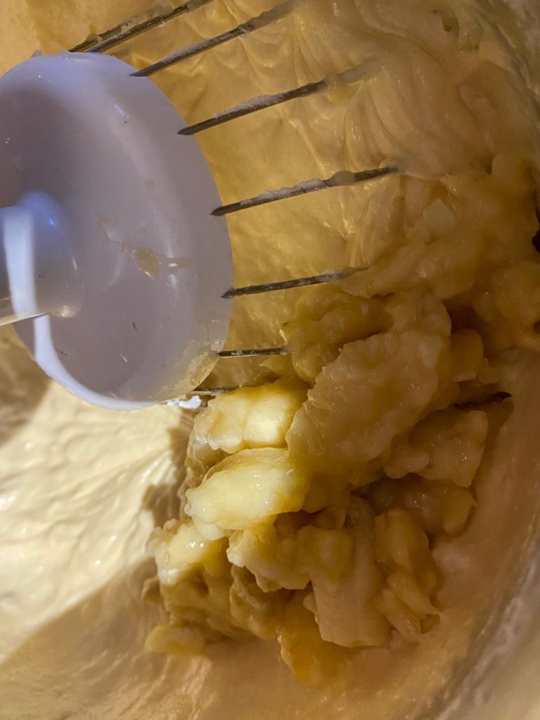 Θα σου περιγράψω λίγο τι ακριβώς δημιούργησα . Αρχικά έφτιαξα ένα παντεσπάνι με τα βασικά υλικά που όλοι γνωρίζουμε και πρόσθεσα μέσα στο μείγμα 3 ώριμες πολτοποιημένες μπανάνες, (κάνε το λίγο εικόνα!!!) το εψησα και το άφησα να κρυώσει.